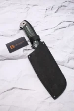 Comes with a custom leather sheath for safe storage and transport — durable stitching and a snug fit protect the edge and ensure ease of carrying.