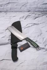Handcrafted Chef’s Cleaver • N690 Steel • G10 Handle • Leather Sheath Included