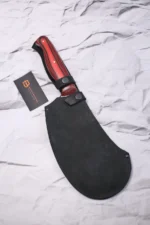 For safe storage and transport, the cleaver comes with a custom leather sheath — sturdy, protective, and tailored to fit the blade securely.