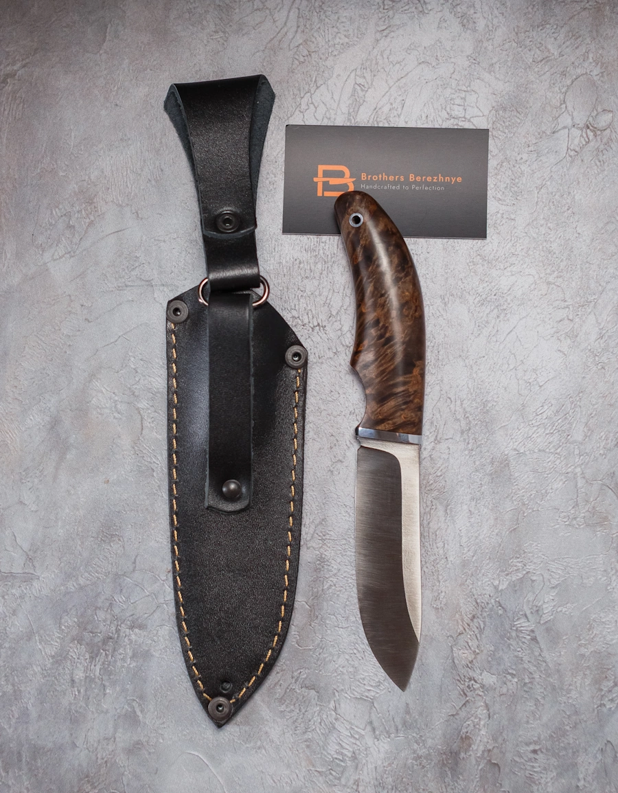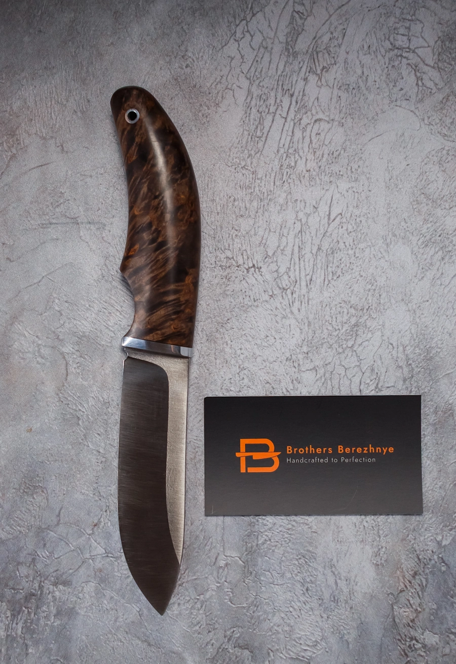 The knife is crafted from Kh12MF steel – a tool-grade die steel.