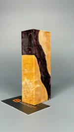 Discover the perfect fusion of nature and innovation. This hybrid block combines the timeless elegance of stabilized Karelian birch with the durability of acrylic, creating a material that’s both stunning and functional.
